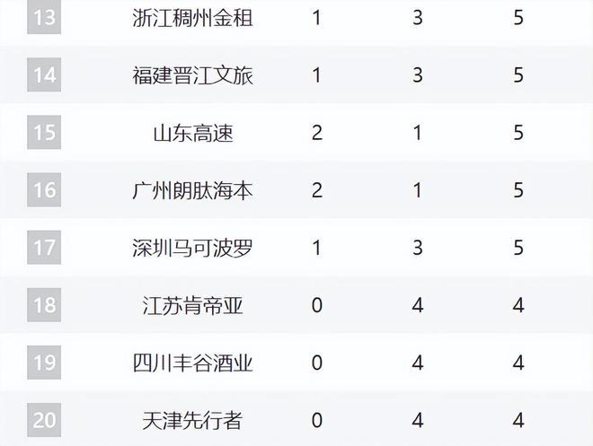 13-17分别是浙江、福建、山东、广州和深圳,其中山东和广州少打一场比赛,目前他们都是2胜1负。而山东目前还没有找到核心体系,球队依然是磨合与摸索,希望以陈林坚与陶汉林为核心。广州今夏还获得了补强,球队更加均衡,他们会冲击季后赛。浙江、福建、深圳都是1胜3负。浙江是遭遇伤病,福建和深圳的实力下滑,这两支球队应该很难掀起风浪了。