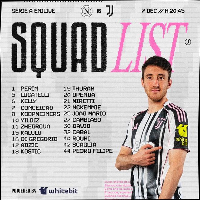 尤文客战那不勒斯大名单:伊尔迪兹领衔,加蒂、DV9伤缺