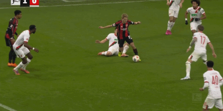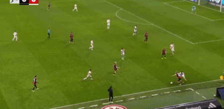 第68分钟,堂安律右路内切低射门破门打破场上僵局,法兰克福1-0