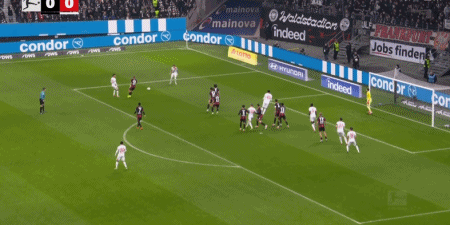 第21分钟,法兰克福右路射门被达门挡出,蒂特跟上射门高出